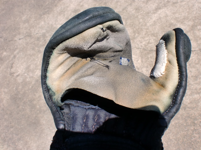 外して行くとへり皮・小手・手の内を縫い合わせてあることが わかります。