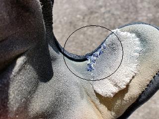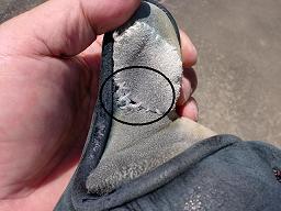 昨年の冬に顎のところが面で擦れたのか傷になっていた。