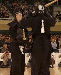 で振りかぶってのぞきから見える相手を打ってみなさい。また剣道は